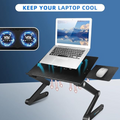 - 🔧❄️ Adjustable and Easy to Assemble: Equipped with 2 powerful cooling fans, our Lap Top Desk rapidly releases heat during work. Easily adjust the angle of the legs by pressing the button to find your ideal working height. The mouse pad is conveniently reversible on both sides.